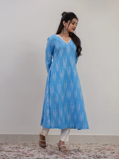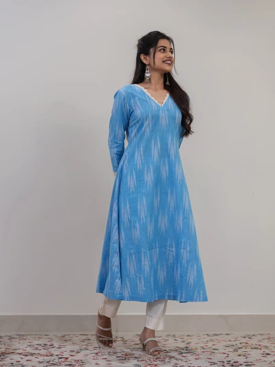 Aqua Berry Ikat A-Line Kurta