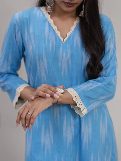 Blue Rayon with Organza Applique Kurta