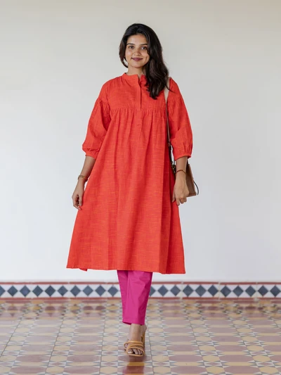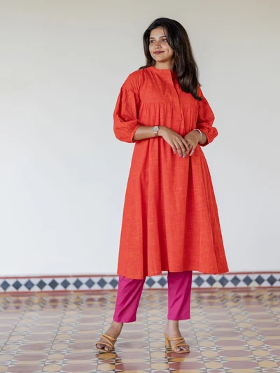 Handloom Saffron Swing A-Line Kurta