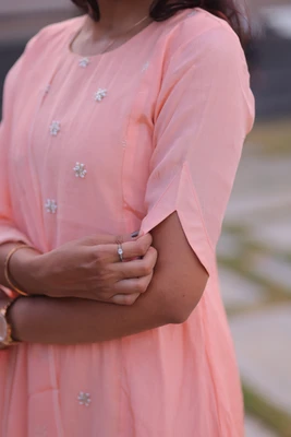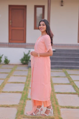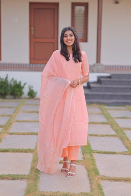 Peach Bloom Embroidered A-Line Co-ord Set With Dupatta