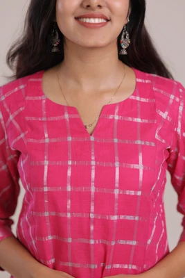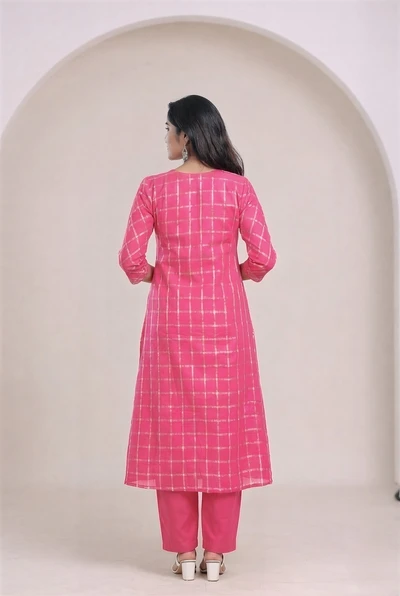Pink Plum Handblock A-Line Kurta Set