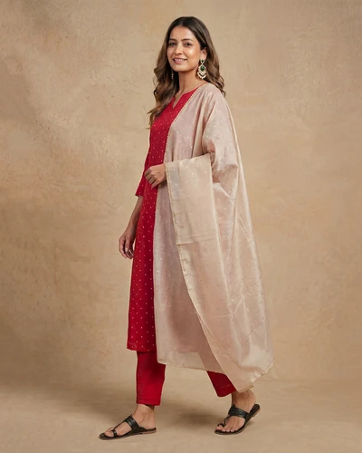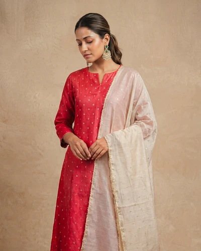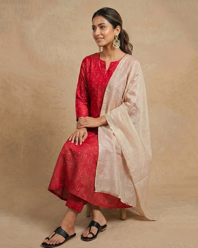 Sindoori Banaras A-Line Kurta With Dupatta