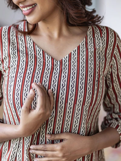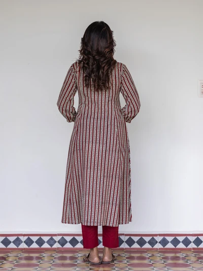 Terracotta Striped Handblock A-Line Kurta