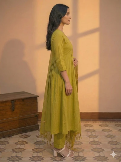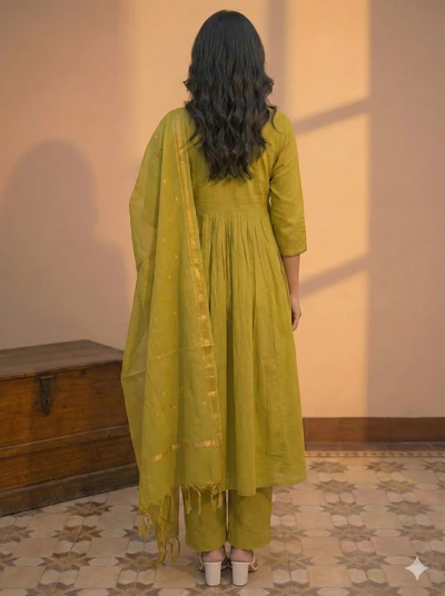 Turmeric Twist Handloom A-Line Co-ord Set With Dupatta